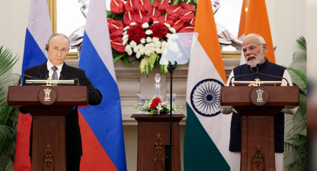 ਰੂਸ ਦੇ ਰਾਸ਼ਟਰਪਤੀ ਵਲਾਦੀਮੀਰ ਪੂਤਿਨ ਭਾਰਤ ਦੇ ਦੌਰੇ ’ਤੇ ਹਨ। ਇਸ ਦੌਰਾਨ ਸ਼ੁੱਕਰਵਾਰ ਨੂੰ ਉਨ੍ਹਾਂ ਨੂੰ ਰਾਸ਼ਟਰਪਤੀ ਭਵਨ ਵਿਖੇ ਰਸਮੀ ਸਵਾਗਤ ਅਤੇ ਤਿੰਨੋਂ ਸੈਨਾਵਾਂ ਦਾ ਗਾਰਡ ਆਫ਼ ਆਨਰ ਦਿੱਤਾ ਗਿਆ। ਪ੍ਰਧਾਨ ਮੰਤਰੀ ਨਰਿੰਦਰ ਮੋਦੀ ਨਾਲ ਉਨ੍ਹਾਂ ਦੀ 23ਵੀਂ ਭਾਰਤ-ਰੂਸ ਸਿਖਰ ਵਾਰਤਾ ਹੋਈ, ਜਿਸ ਦੌਰਾਨ ਦੋਵਾਂ ਦੇਸ਼ਾਂ ਨੇ ਕਈ ਅਹਿਮ ਸਮਝੌਤਿਆਂ ‘ਤੇ ਦਸਤਖਤ ਕੀਤੇ ਅਤੇ ਕਈ ਅੰਤਰਰਾਸ਼ਟਰੀ ਮੁੱਦਿਆਂ ‘ਤੇ ਗੱਲਬਾਤ ਕੀਤੀ।